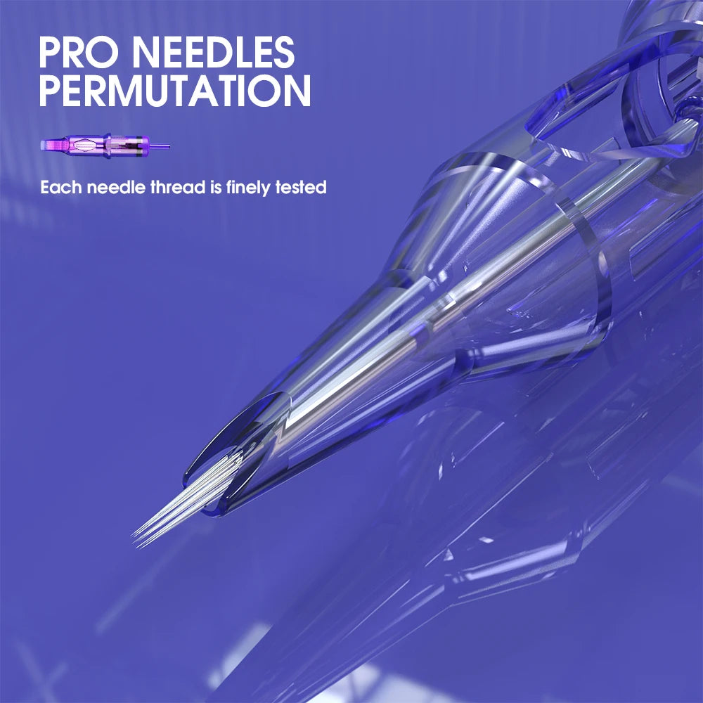 Protective membrane prevents from liquids leaking into the machine. The individual tips are completely enclosed around the needle's bar, which helps enhance needle stabilization and improves precision. The tattoo cartridge can draw in and distribute the ink perfectly which makes your work even throughout. Whether hair technique, lip full drawing, or other types of permanent cosmetics, these needle modules ensure clean pigmentation, exact lines, and exceptional color flow. Safety Mast PRO cartridge needles use light clear color tips shells, better visibility. The needle is made of surgical stainless steel and Individually packaged. Low profile housing & better ink flow & shape on the inside, Smooth edges eliminate additional trauma.Works with Most Machine