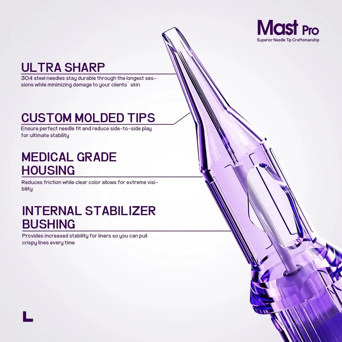 Developed by Mast Tattoo, this series is exquisite in every step with a unique style stabilizing system. Mast Pro is designed to provide the maximum ideal cartridge needles.